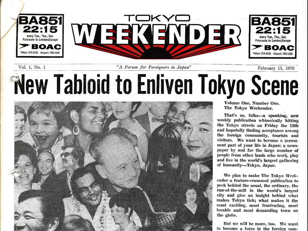 On February 13, 1970 (Friday the 13th), editors and publishers Susan Scully and Millard (Corky) Alexander delivered the first issue of Tokyo Weekender with the announcement, “That’s us, folks–a spanking, new weekly publication.” While Tokyo Weekender has evolved from a weekly newspaper to a full-color, glossy monthly magazine, the mission hasn’t changed.