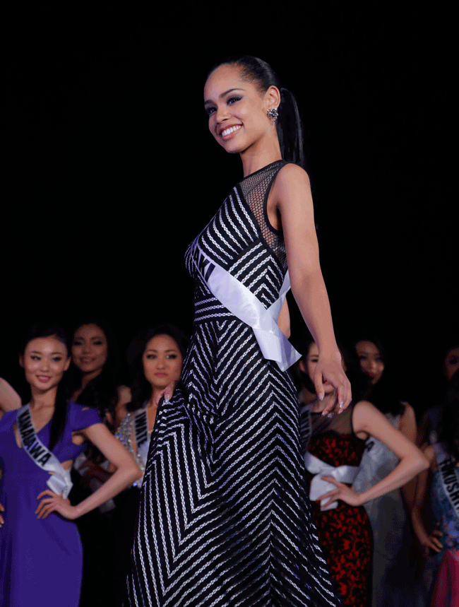 Frustrated with life in Japan and wanting to learn more about her father’s country, Miyamoto moved to the States during her mid-teens to study at high school. Despite not speaking English well, she says life was “carefree.” Back in Japan she worked as a bartender and model before being invited to represent Nagasaki in the Miss Universe contest. She turned the original offer down because she didn’t think a mixed-race person like her could win—then a personal tragedy changed her mind.