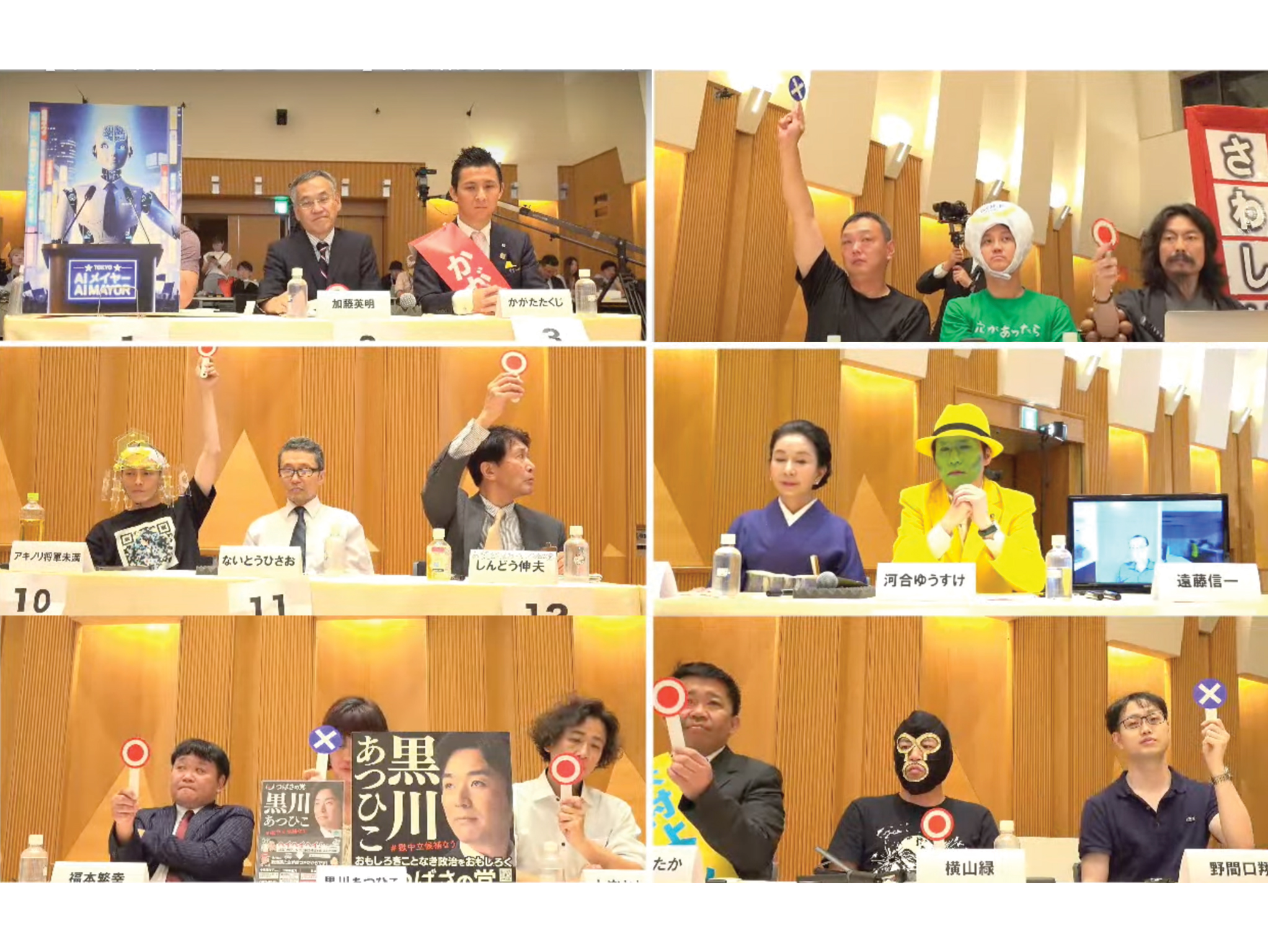 Hatakeyama tried to calm the situation. “You’re all candidates. It is the voters who decide who is suitable or not,” he said. Independent candidate Akane Himasora had already seen enough. The YouTuber, who had been participating online, departed after saying, “There is no one here to debate with, so I am leaving now.” Another person who left early was Midori Yokoyama, a self-proclaimed internet comedian representing the NHK Party. “The number of people viewing this has dropped, so I’m leaving,” was his reason. There are 19 candidates from the NHK Party, who have all been asked to “hijack” campaign boards with their posters. The gubernatorial race has been heavily criticized for making a mockery of the electoral process.