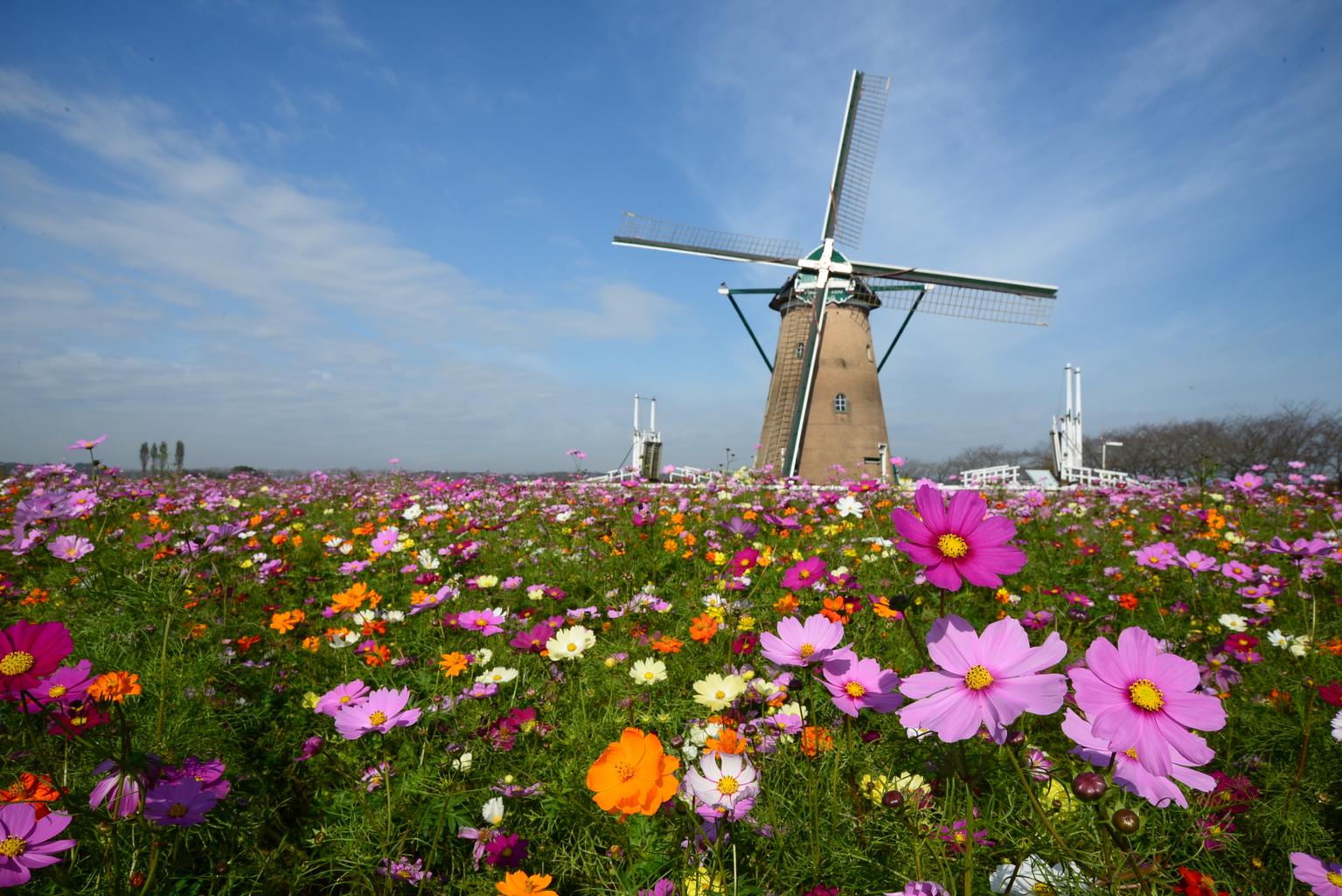 Sakura Furusato Hiroba is a famous place to catch a glimpse of these flowers. The gorgeous cosmos field which surrounds the park’s iconic windmill is a magical sight that would keep anyone spellbound.