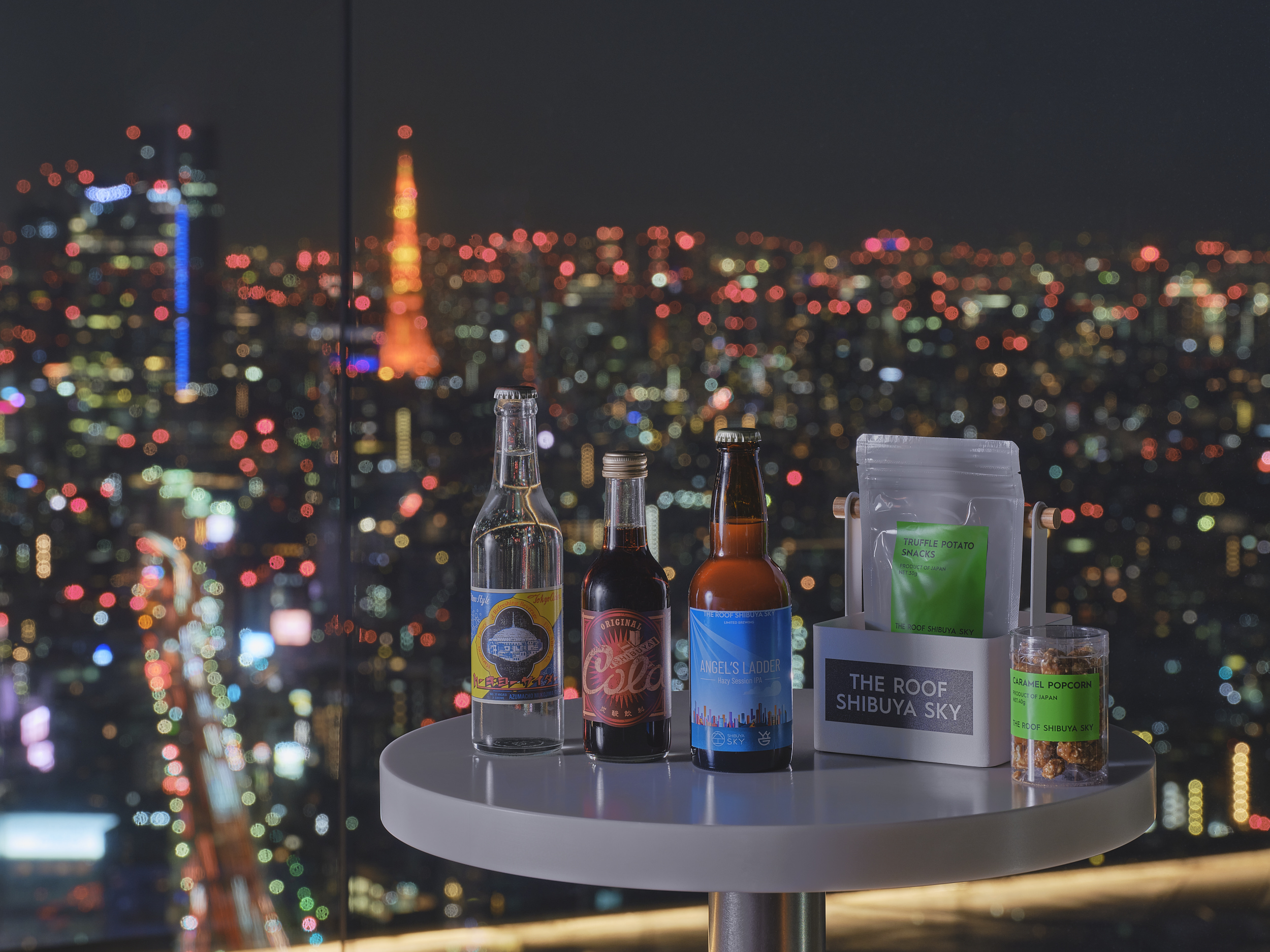Open for a limited time from April 28 until November 30, this popular open rooftop also has a bar. You can enjoy drinks and snacks on the sofa seats and standing tables while overlooking the skyscrapers in Shibuya and beyond. Drinks include an original craft beer created for Shibuya Sky by urban microbrewery Y.Y.G. Brewery in Yoyogi, Shibuya. There are a la carte snacks and drinks, as well as set packages that include drinks and a guaranteed sofa seat that you can purchase with your entrance tickets.
