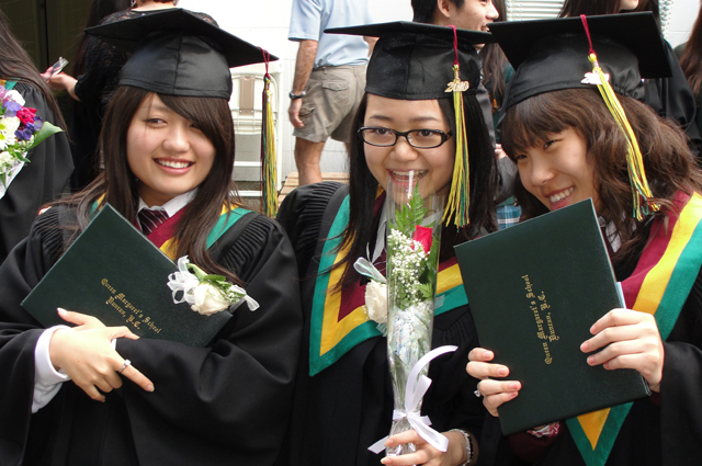 Main image: New graduates, from right to left: Michiko, Yumina, and Rii