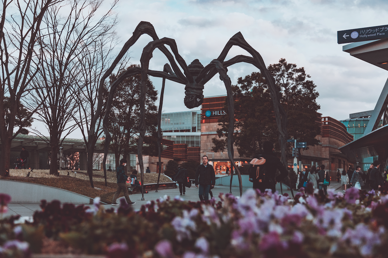 If anything provides a stark contrast to Roppongi’s former sleazy image it’s Keyakizaka, a 400m-long avenue alongside Roppongi Hills. Heads will be turned by Keyakizaka’s top-class boutiques and the occasional supercar purring down the road. It’s beautifully lit up with illuminations during the festive season. Move inside the Hills complex for a plethora of entertainment options including those at Grand Hyatt Tokyo (especially The Oak Door Steakhouse and its accompanying bar), a multiplex cinema, exquisite Japanese garden and pond, Mori Art Museum, plenty of shopping and dining options … and a giant steel spider (“Maman” by Louise Bourgeois). It’s possible to catch great views of Tokyo Tower from parts of the concourse but for a spectacular 360-degree view of the surrounding area head up to Tokyo City View Lounge on the 52nd floor of Mori Tower (or go even higher to the open-air rooftop Sky Deck) — great for observing a decent sunset over the city.