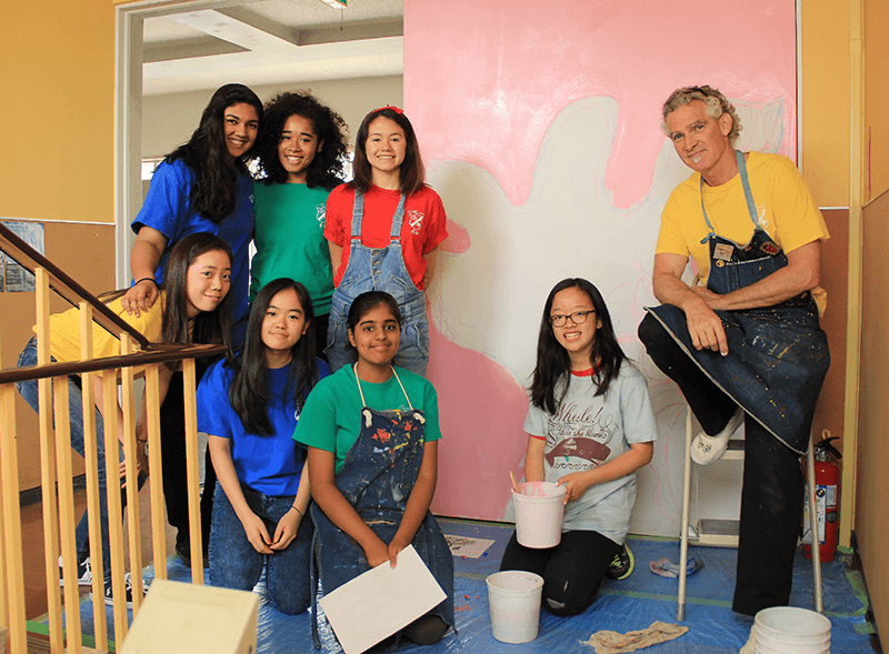 With this in mind, a couple of teachers presented the Sisters with the idea of doing a Day of Service a few years before, and the first St. Raphaela Day of Service was held in 2014. Three years later, on a cool Friday, students were engaged in a variety of service projects: the youngest children were preparing lunch for school staff, while groups of students from the elementary, junior high, and high school were doing everything from painting murals around the school and giving musical performances at neighboring senior homes to making origami cranes for local hospitals and getting involved with cleanup efforts on and off campus.