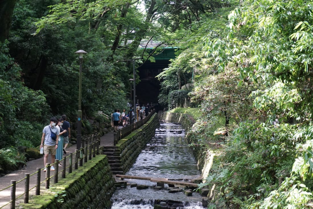 Todoroki Valley is the most well-known place on this list. Nestled at the edge of Setagaya near the Tama River, this green oasis is the only gorge in Tokyo’s 23 wards. The gorge is famous for its dense foliage and its cool temperatures; however, this beautiful and immediately impressive sight is also one of the most popular on this list, so be sure to go early in the day to beat the crowds.