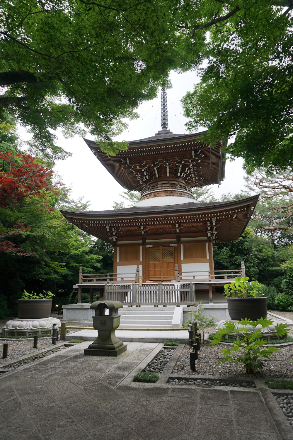 This walled temple ground is located near Kamimachi Station on the Tokyu Setagaya Line. These grounds aren’t particularly large, but the detail put into every aspect makes this place worth visiting. Small statues, fountains and rock formations are hidden by bamboo groves, hedges and carefully shaped trees. A two-tiered pagoda stands in the middle of the grounds; its fresh wood, yet to be weathered by the seasons, gives a modern look to the traditional architecture. Take your time here and look around every corner.