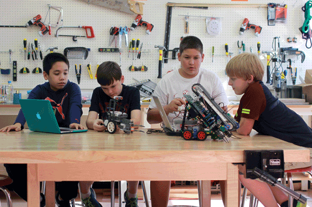 Before students in the higher grades begin printing their own 3D shapes in the design labs or programming robots to do battle in friendly competition, they have already learned in the early grades how to “think like designers.” For example, in December, elementary school students joined in on the worldwide Hour of Code project, where activities ranged from programming small robots to developing more complicated software projects on their iPads.