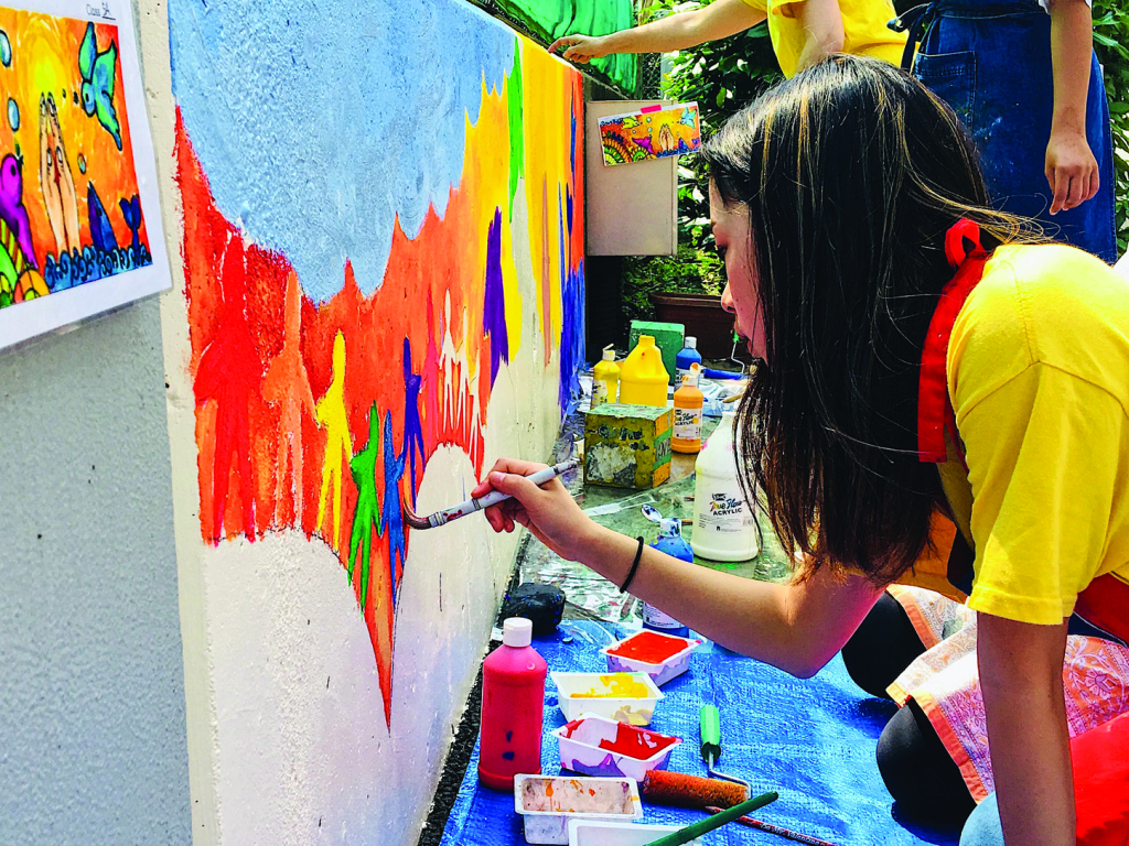 One of the onsite tasks involved painting art murals — the high school mural featured famous women such as Rosa Parks and Yayoi Kusama. Other teams made friendship bracelets for a fundraising project, repurposed textile waste into fashionable accessories, and yet others documented the whole affair on camera that they then uploaded to the school’s social media accounts and website.
