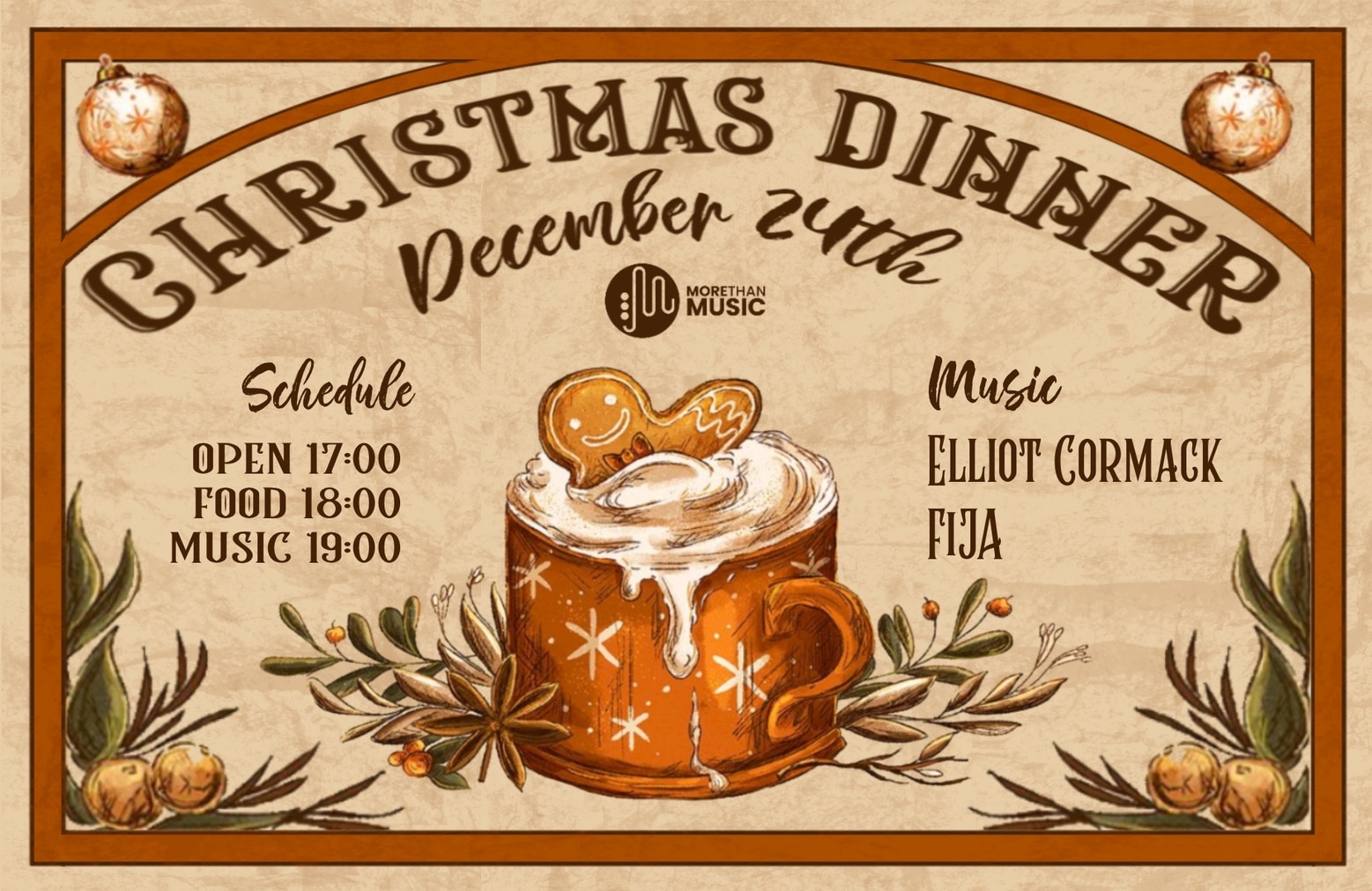 To match the season, the December dinner event is a traditional Christmas dinner with live music by Elliot Cormack.