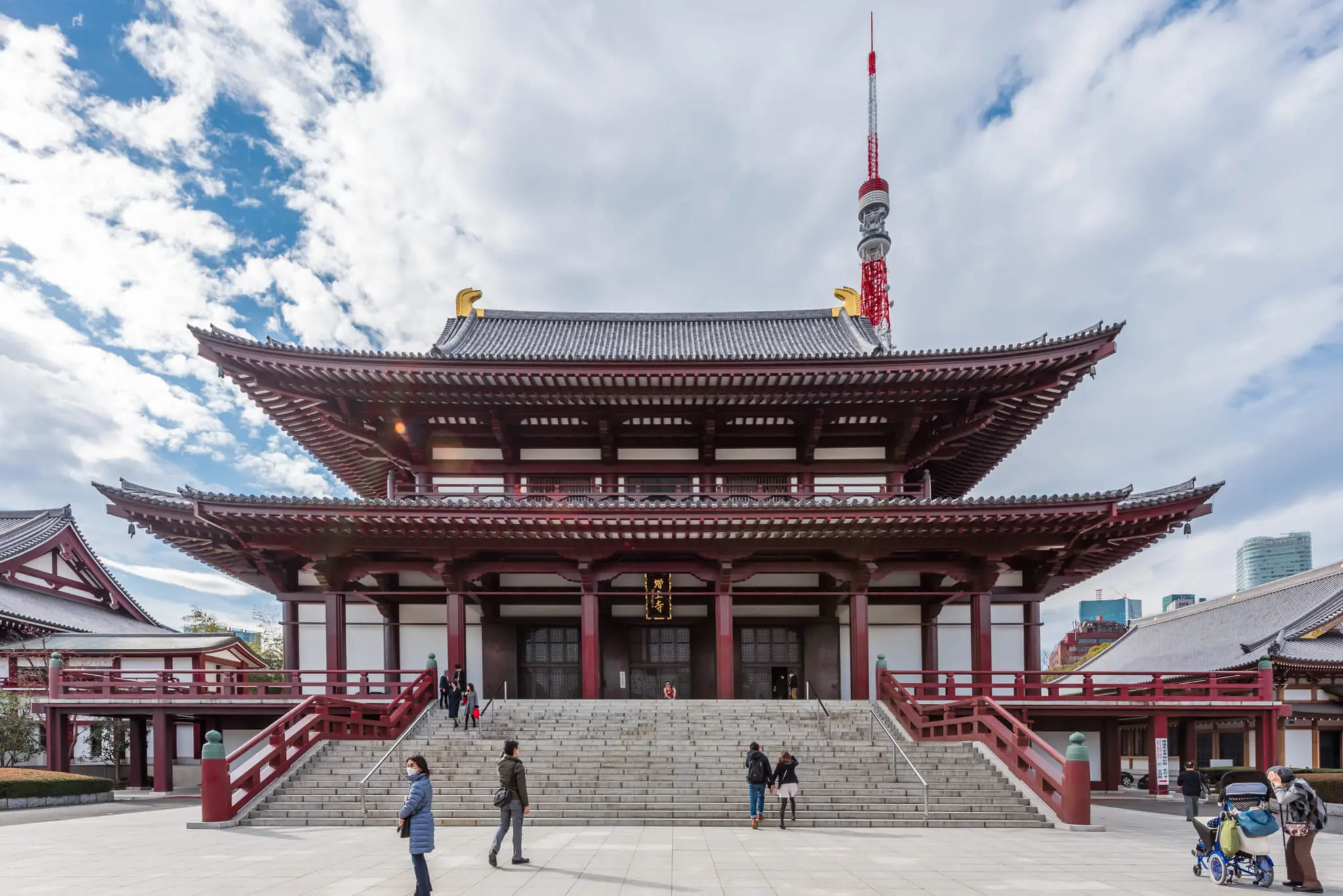 Zojoji, located in Minato ward, is popular for its proximity to the iconic Tokyo Tower and its impressive scale. The temple is dedicated to the Jodo sect of Buddhism, and it has a deep connection to the Tokugawa family. Deeply affected by wartime air raids, the temple also serves as a symbol of postwar resilience and the convergence of modernity and spiritual traditions.