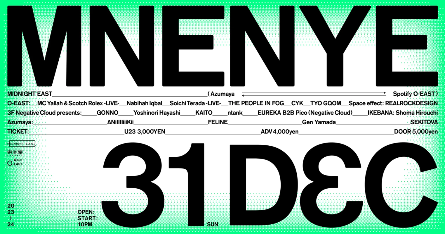 Midnight East, the collaborative night venue by Spotify O-EAST and DJ bar Azumaya, will present its first ever countdown party called MNENYE (Midnight East New Year’s Eve).