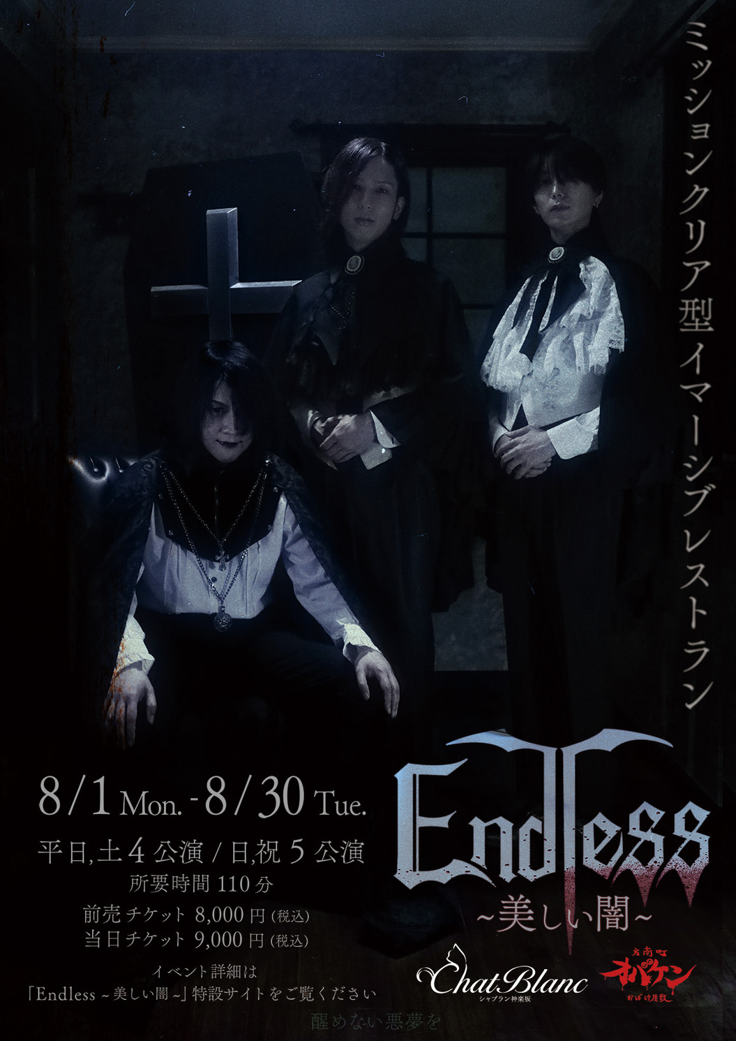 From August 1 to August 30 at the stylish restaurant Chat Blanc Kagurazaka customers can enjoy an immersive horror performance and experience designed by the famed haunted house production company Obaken. In the story,  visitors are invited to a mansion and they must figure out a way to escape by exploring the three-story mansion restaurant. If they fail, then they will become one of the vampires living in the mansion.