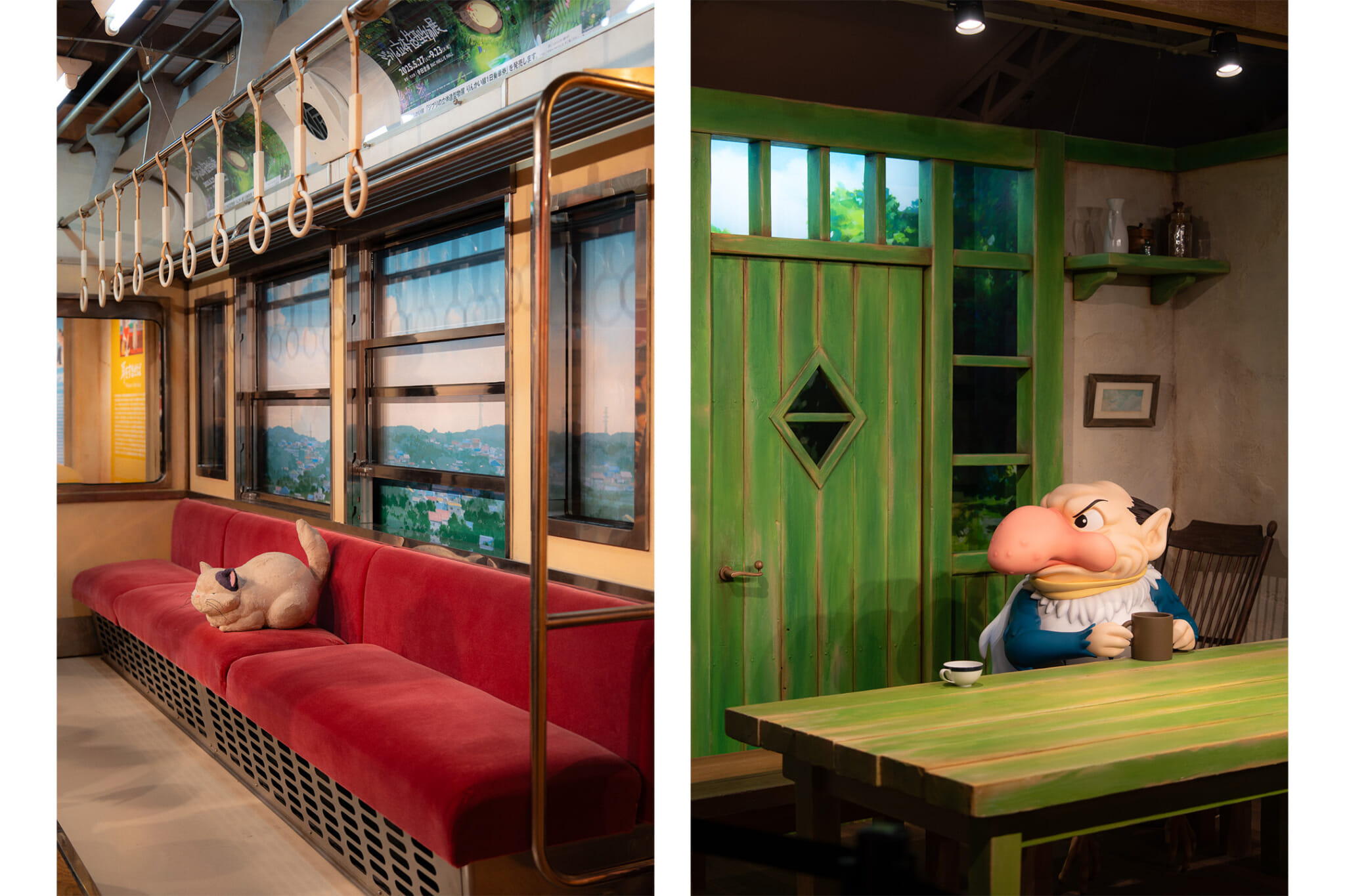 Various interactive photo spots can also be found through the exhibition. Interactive spots include areas where you can pet Moon the cat on a train, just as Shizuku did in Whisper of the Heart, or to confront the humanoid shapeshifting heron from Ghibli’s most recent release, The Boy and the Heron.