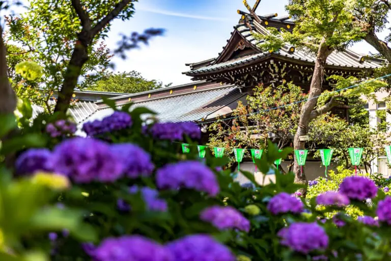 Known for its gorgeous wisteria flower trellises, Kameido Tenjin Shrine is one of the best places in Tokyo to feel the timeless beauty of these blossoms. This shrine was visited by the fifth shogun Tokugawa Tsunayoshi and the eighth shogun Tokugawa Yoshimune for wisteria blossom viewing. It’s also the subject of many ukiyo-e woodblock prints and other works of art.