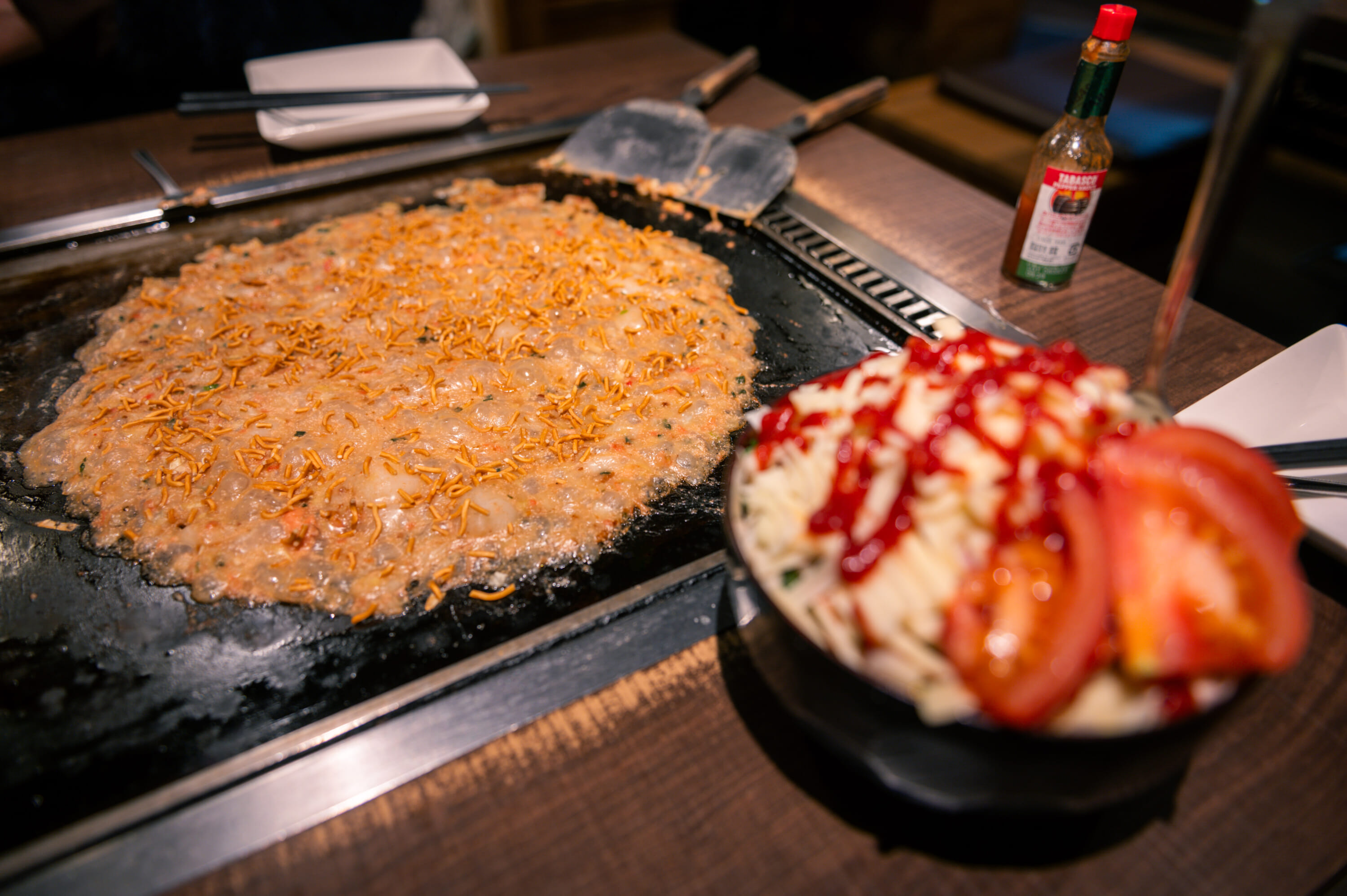 But what does this have to do with Tsukishima? Running almost the entire length of the neighborhood is the Nishinaka-dori shopping street, more affectionately known as Monja Street. Here you’ll find what may be the most densely populated assortment of monjayaki restaurants in all of Tokyo. And it’s not just a few — every second or third store is filled with the do-it-yourself grill tables synonymous with cooking and eating monja, creating a level of competition that sees many restaurants offering a unique spin on the classic Tokyo dish.