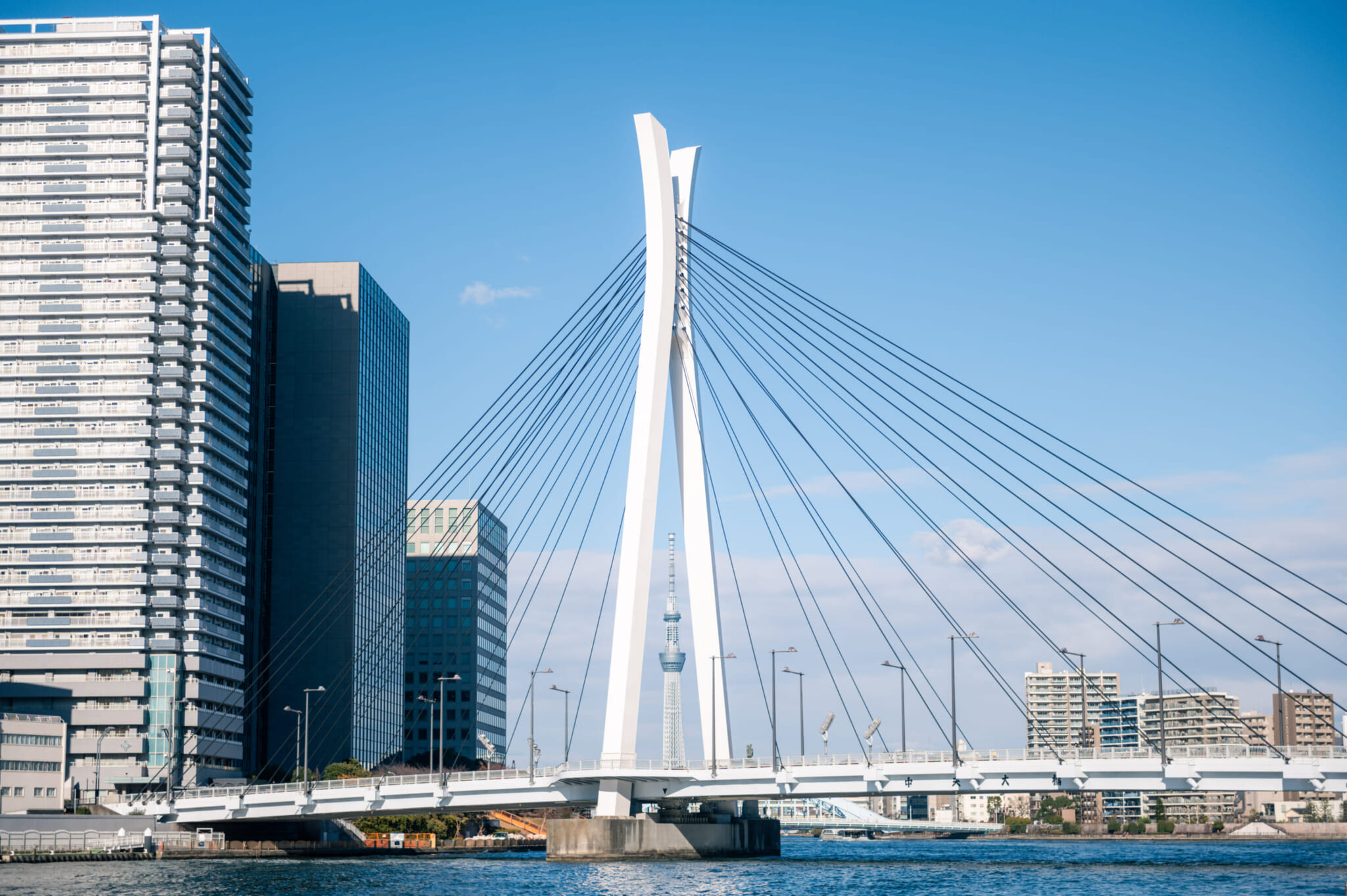 After filling up on monja, explore this part of the city with a walk along the neighboring Sumida River up toward Tsukuda. Heading north along the waterfront, you’ll be treated to a number of viewpoints along the river that offer impressive panoramas of the surrounding skyline. You may notice that the white arch of Chuo-Ohashi Bridge, when viewed from the correct position along the bank of the Sumida River, perfectly frames the iconic Tokyo Skytree that rises in the distance.