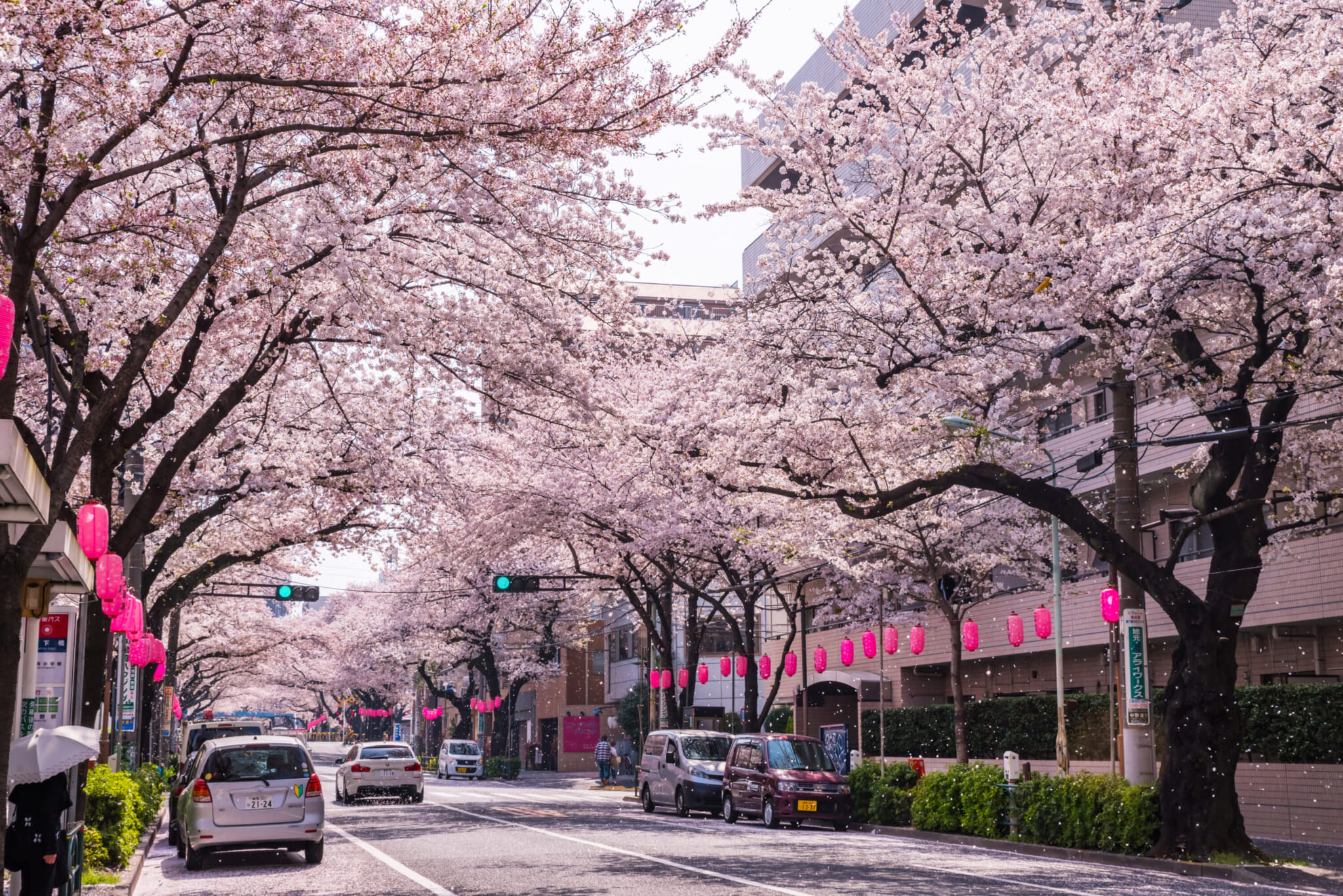 Located in close proximity to Asakusa — home to Senso-ji Temple and Nakamise Street— Sumida Park has been a staple of the cherry blossom season since the Edo period. Boasting around 500 cherry blossom trees, the spacious riverside park also offers a beautiful view of Tokyo Skytree. You can also enjoy the Sumida Park Cherry Blossom Festival from day to night, which features festival stalls and other fun activities.