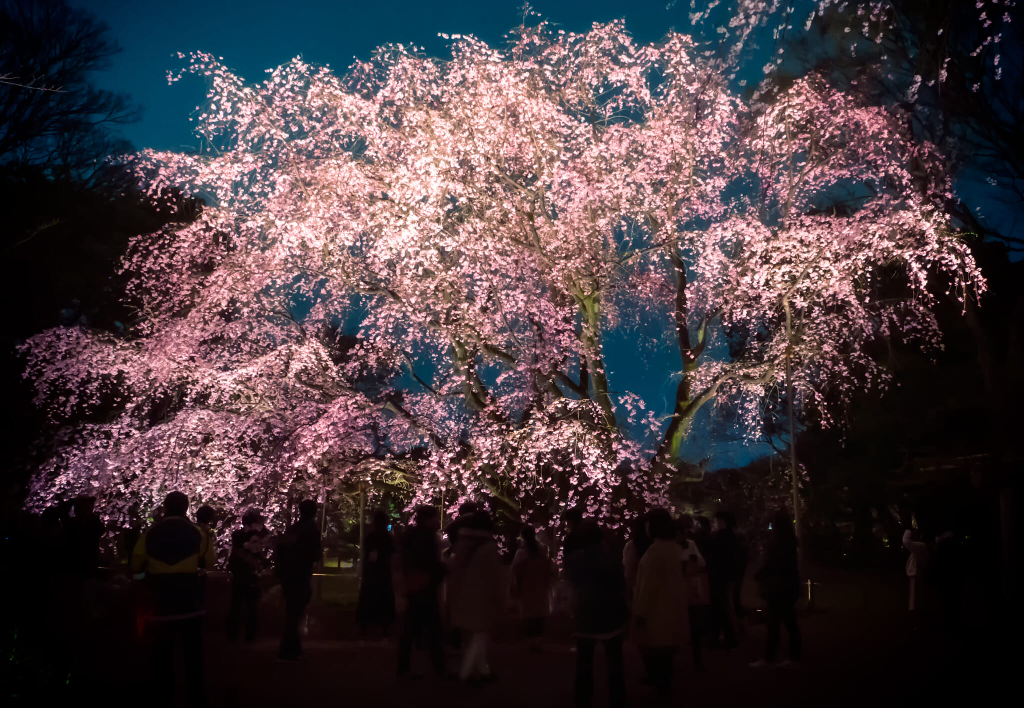 Featuring a gorgeous, magnificent shidarezakura (weeping cherry) tree, Rikugien is one of Tokyo’s most stunning Edo-style landscape gardens. It was designated as an Important Cultural Asset and a Site of Exceptional Beauty by the city of Tokyo in 1953. Typically at peak bloom in late March, the weeping cherry tree is made even more breathtaking through its illumination at night.