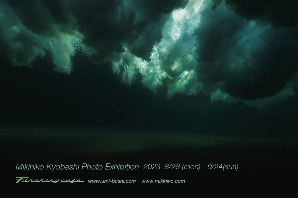 Known for his breathtaking photographs of the underwater ocean, Mikihiko Kyobashi is exhibiting at Fireking Cafe for the 19th year. Kyobashi has had an immense love for the ocean since childhood. He now swims in the deep waters with fins, goggles and a camera. Fireking Cafe is decked out with new photographs of Kamakura and Izu Oshima, which have never been seen before.