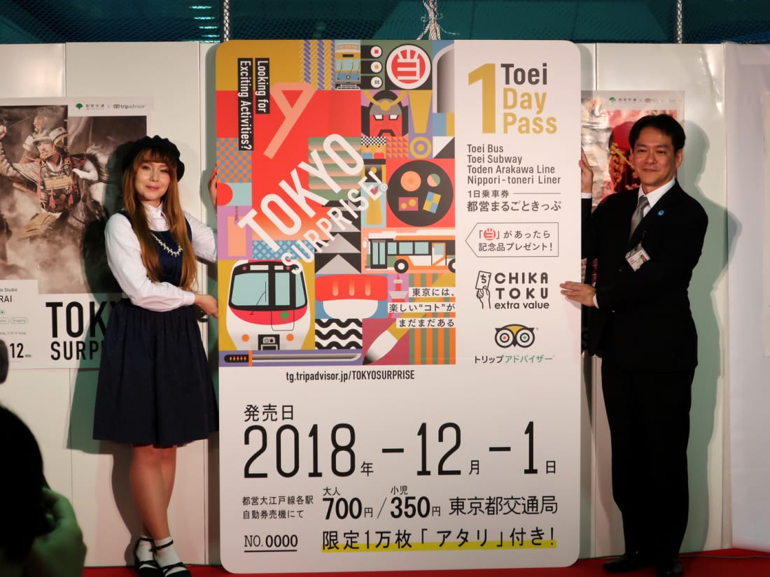 Tokyo Surprise! will be showcased through various posters, the official website, leaflets and more, as well as through the star of the show — the new, limited, and specially designed train ticket. Tickets have been on sale since December 1, available for ¥700 for adults and ¥350 for children, as opposed to the ¥1,940 it would normally cost for the journey. One-day pass tickets are available for purchase at all stations on Toei Oedo Line.