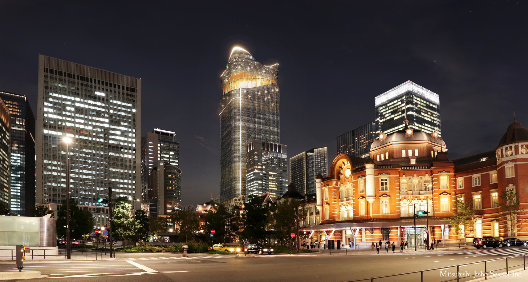 Tokyo Torch exterior view from Marunouchi side of JR Tokyo Station © Mitsubishi Jisho Sekkei Inc.