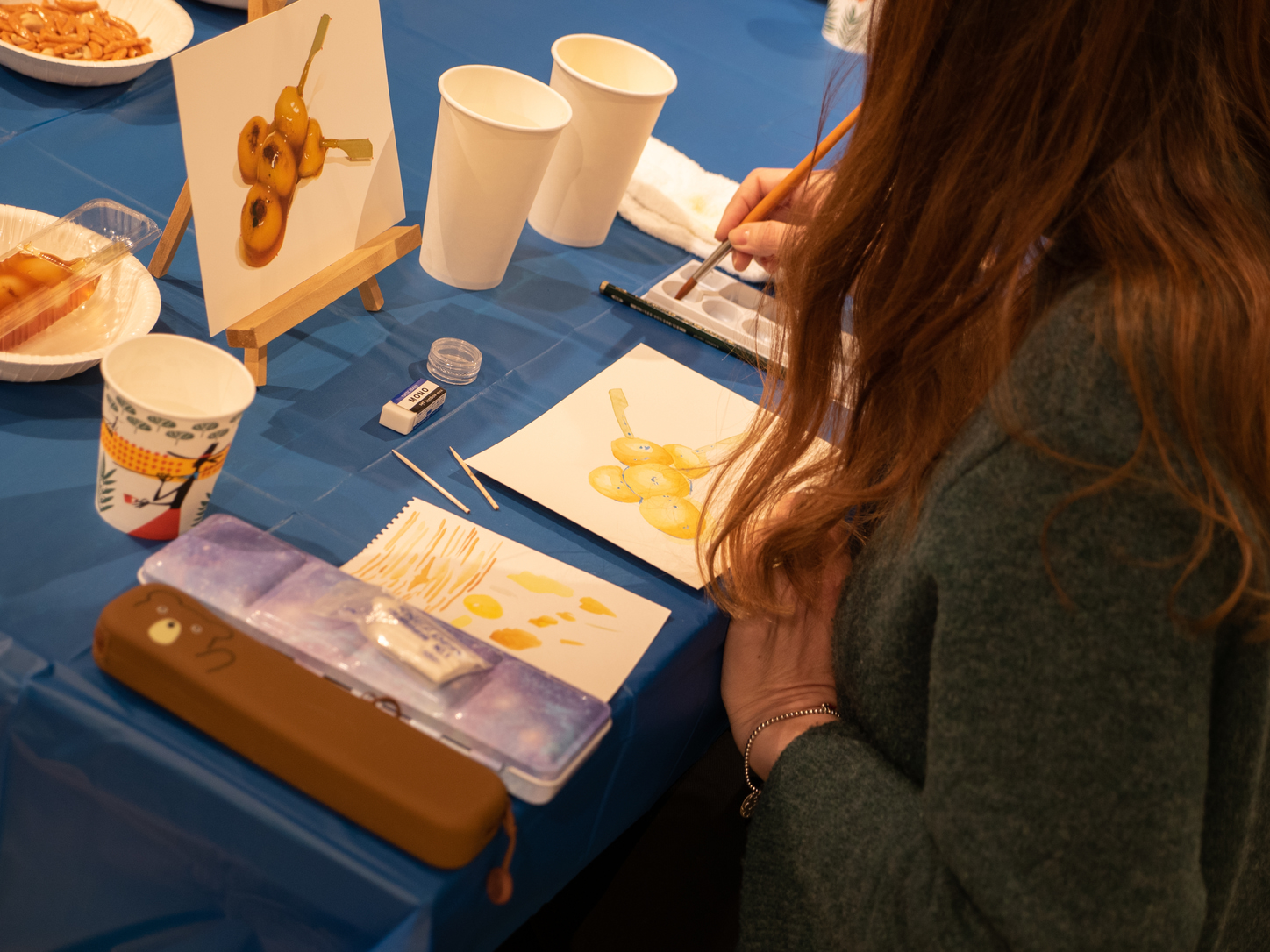 Working with Kailene, we put together a workshop that made watercolor accessible while showcasing her unique style. In just under three hours, participants were able to follow the artist as they recreated the traditional Japanese confectionary. Kailene, a Tokyo-based professional illustrator and TV commentator, was looking to start giving workshops on the regular for anybody interested in watercolor. She was able to swiftly guide each participant to recreate the dango at a comfortable pace.