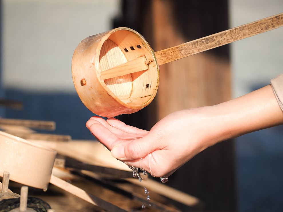 5. Lift the ladle up and let the water pour down the handle Be prepared and bring a handkerchief in advance for smooth sailing.