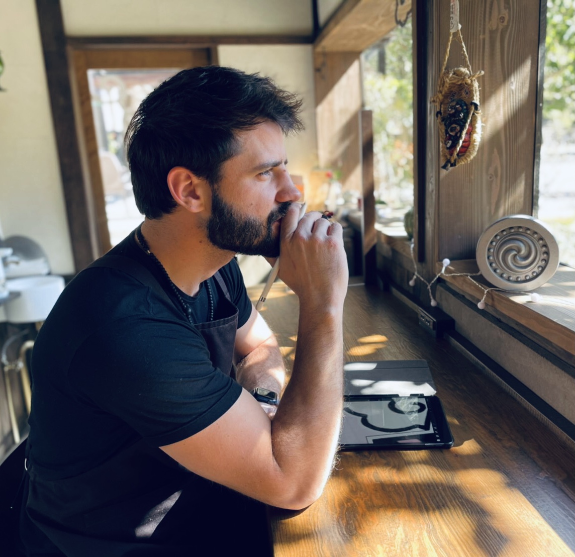 Hailing from Lyon, France, this artist lived in the Netherlands and Australia before calling Japan home. He credits his international experiences as a source of inspiration for his work. Bartlakowski has cycled all over Japan and even helped with the creation of a craft beer at Kakurinbo, a temple guesthouse in Yamanashi Prefecture.
