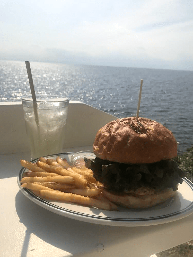 To accompany the magnificent view of Akiya beach, a newly opened café restaurant, Luvit Hayama, offers some of the most gastronomically satisfying hamburgers around.