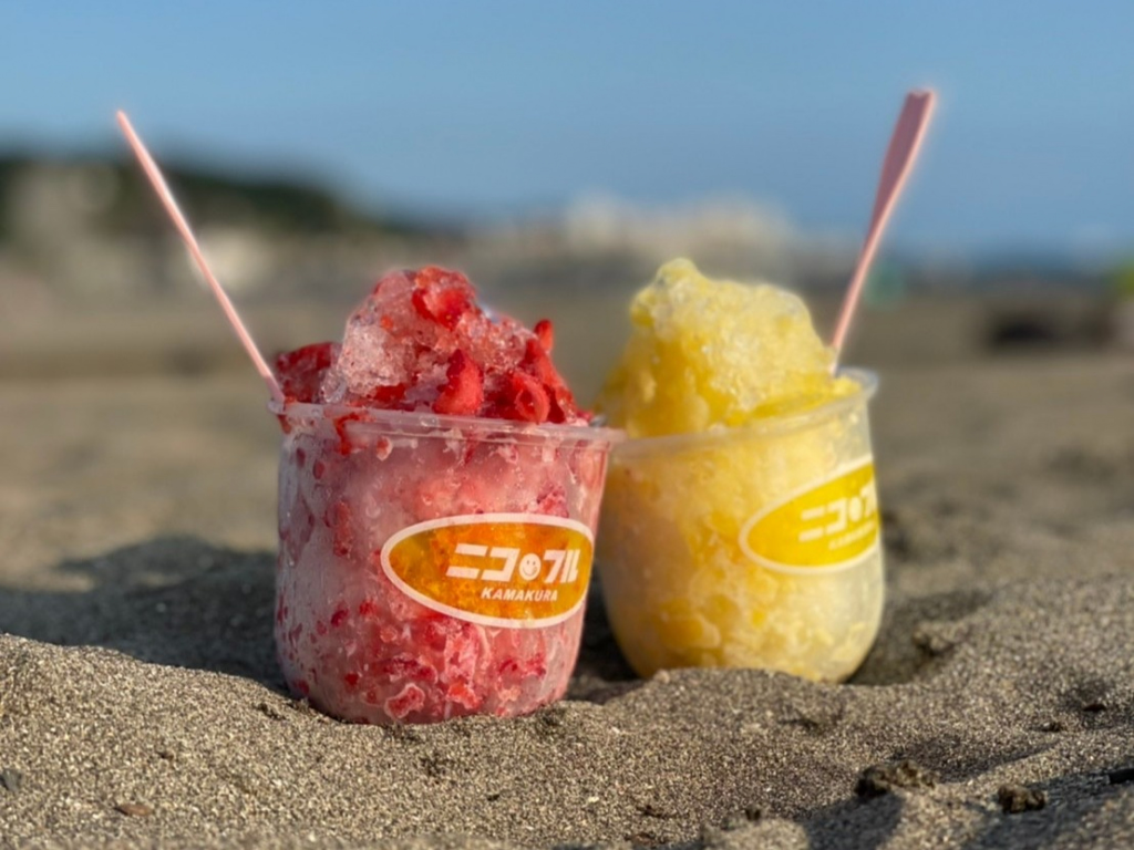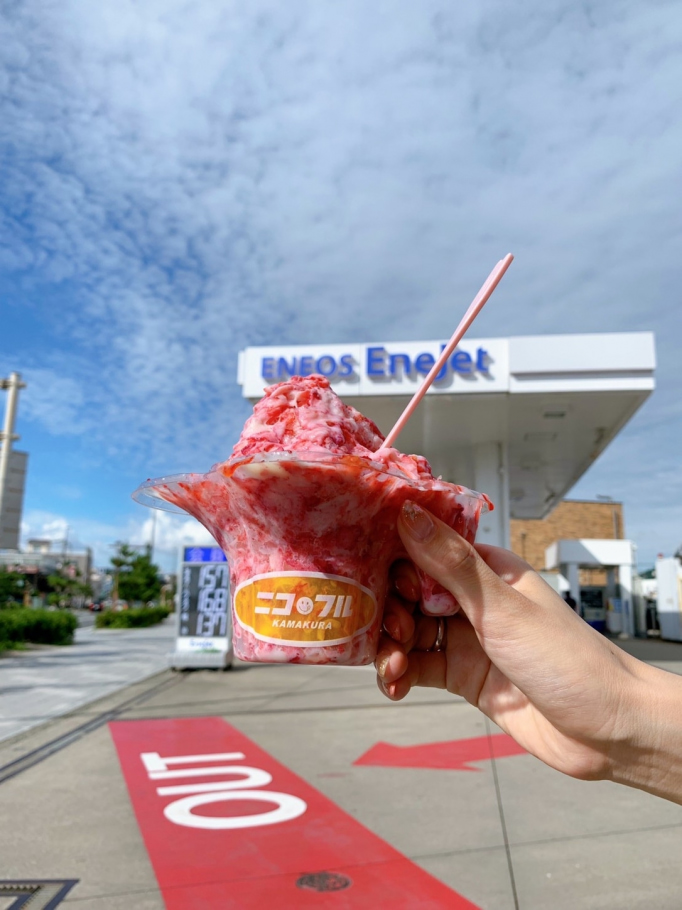 The famous Futakotamagawa shaved ice shop Nicofuru has opened a special pop-up store inside Eneos self Dr. Drive Kamakura SS petrol station in Yuigahama. They will be there until September for your kakigori needs.