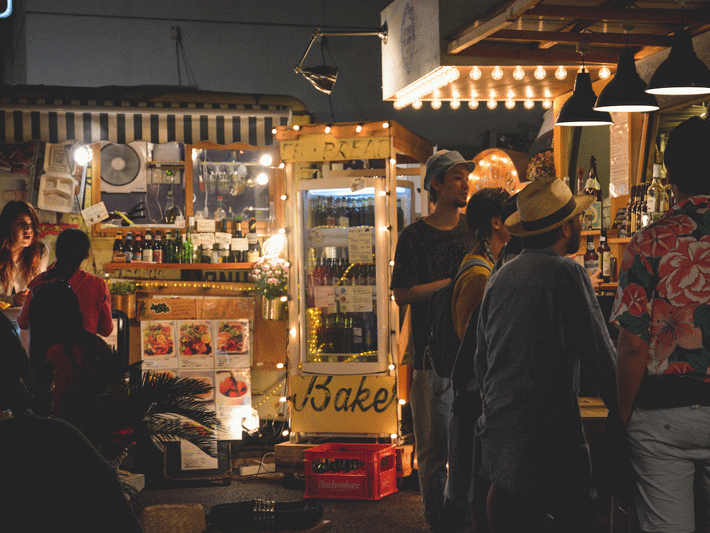 Stroll off the sidewalk of Aoyama Dori (near exit A3 of Omotesando Station) and into the organic wonderland, or ride your bike and make use of the space they have reserved for riders. Plop down on a spacious bench outside one of the food carts with friends, or choose a seat at the cafeteria-style seating area beneath the wide, sheer arch. Brimming with colleagues grabbing a beer after work and couples sharing snacks on a date, Commune 246’s lively atmosphere is fit for any hungry passerby.