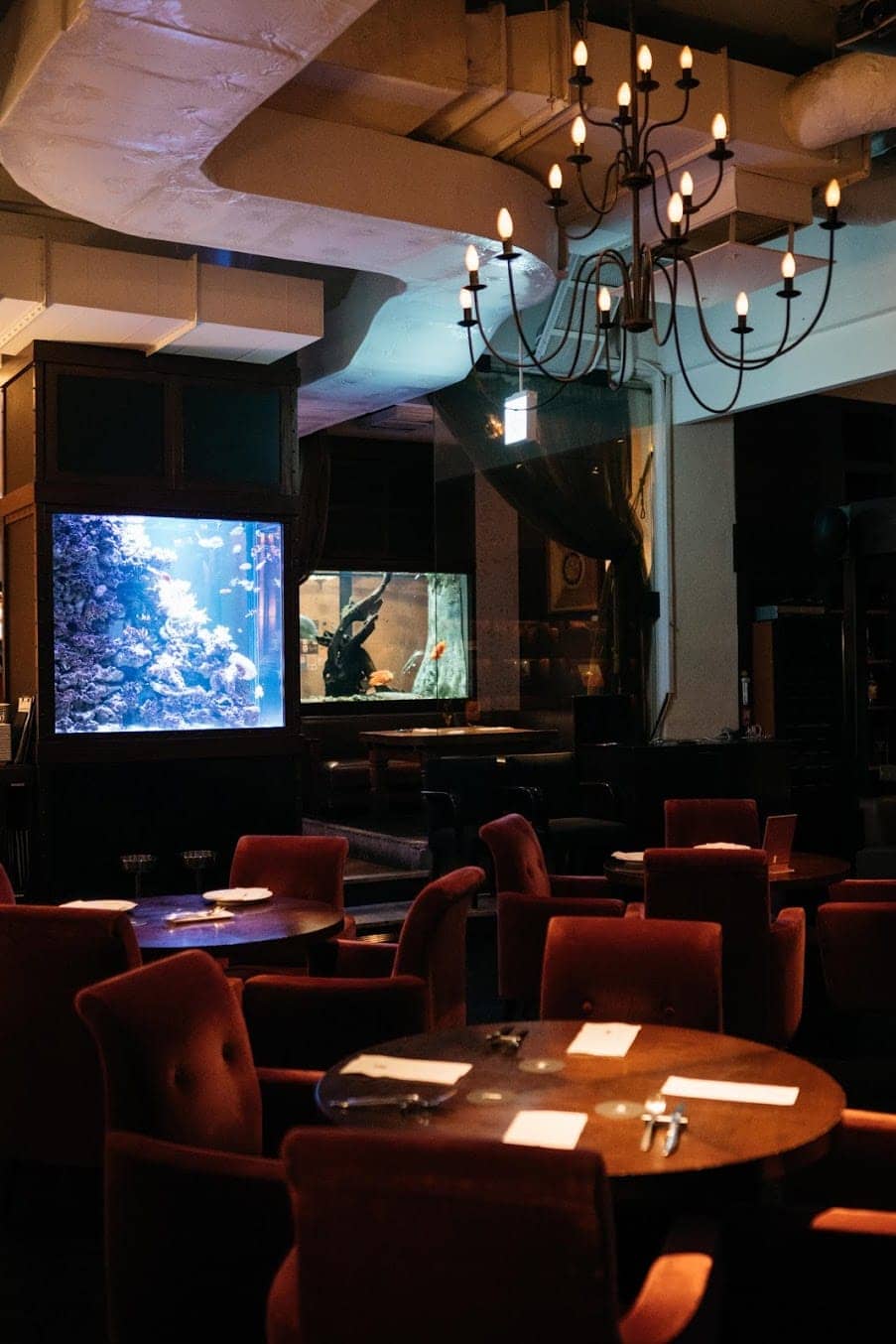 The walls of this basement restaurant feature tanks full of fish, some rainbow colored and others looking like they’re straight out of the Mesolithic. Den Aqua Room offers both course menus and à la carte. Menu highlights include pork in a red wine sauce and yuzu-glazed sausage. They mix up over 60 cocktails too, including eight types of highballs featuring Suntory whisky and bourbon.