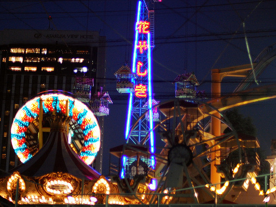A five-minute walk from Asakusa Station, Hanayashiki has been around since 1853, when it originally began as a flower park. Its management gradually added more attractions, including a mini-zoo (which no longer exists today), until it became an amusement park. Nowadays, being a tiny, densely packed amusement park surrounded by tall buildings that are extremely close to the rides, and with rides that have seen better days, its age is evident, but it’s worth a visit for a glimpse of an old-school Japanese amusement park.