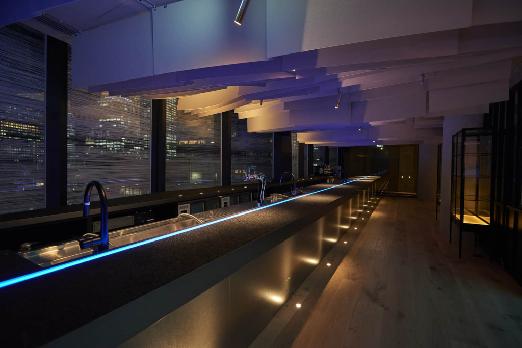 It is then just a short walk to the sleek asphalt-designed main bar which is 30 meters long and has great views of the city. Two B-BOY statues, designed by hip-hop sculptor Taku Obata, are placed at opposite ends of the bar. They will remain there throughout December.