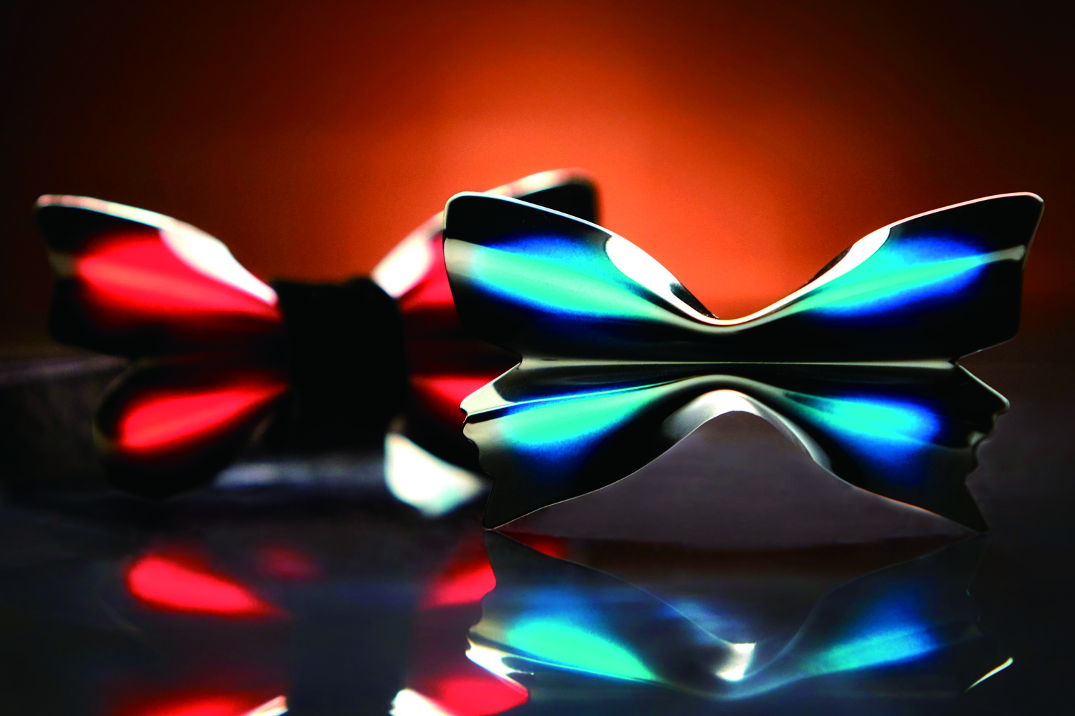 This show-stopping bow tie takes the shape of a vivid three-dimensional butterfly. Reversible and easily detachable so you can mix and match.