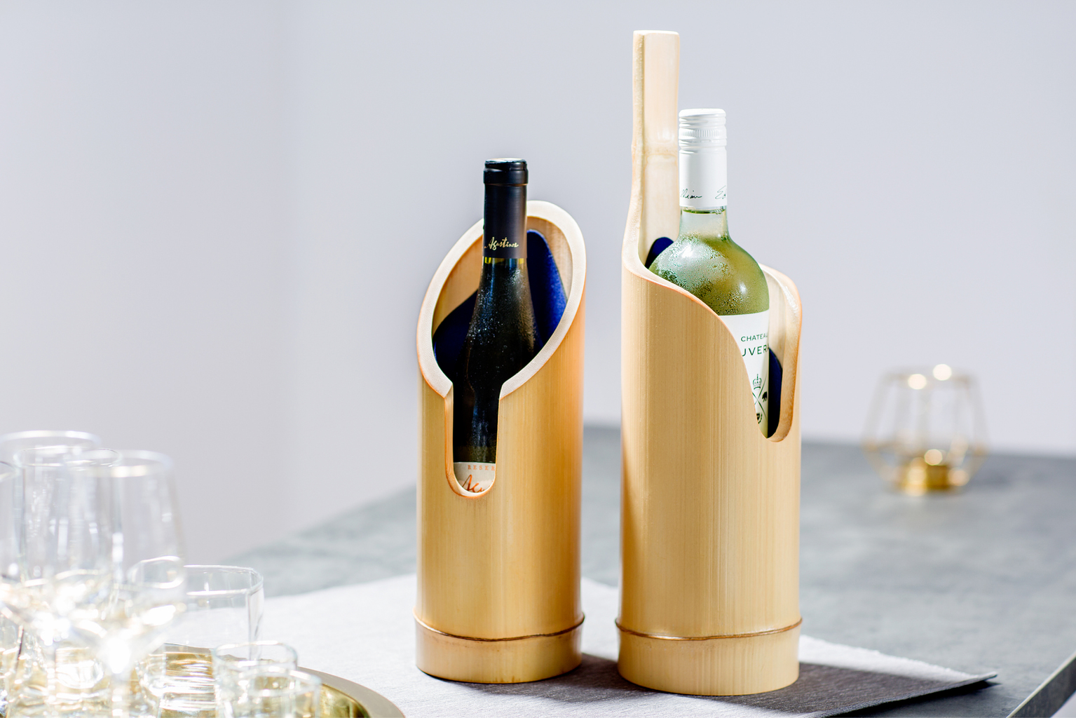 Developed with the purpose of revisiting the value of bamboo, this cooler allows you to rediscover its artistic quality and cooling effect. Simply insert a chilled bottle of wine and enjoy the transformation in aroma and flavor as the temperature gradually changes.