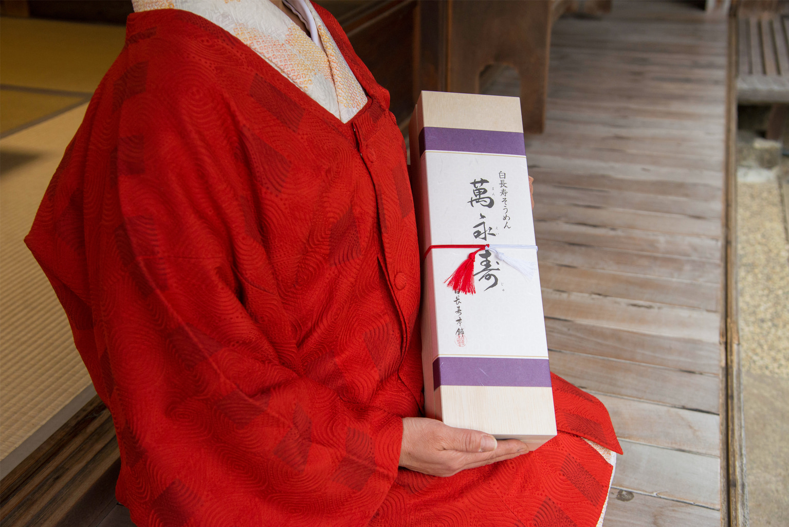 Created in Miwa using a technique that’s over 1,300 years old, Man-eiju somen noodles are twice as long as conventional somen noodles, making them the ideal gift for conveying wishes of longevity. They come packaged in a luxurious paulownia wooden box with sophisticated wrapping paper.