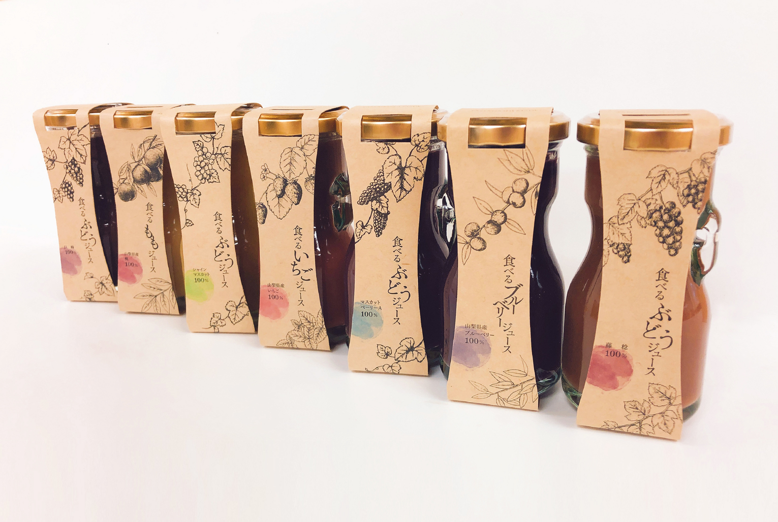 Cultivated in the rich natural environment of Yamanashi Prefecture, the Taberu (Edible) Juice Series is made using only fresh fruits, including the seeds and peel, without including any additives, sugar or even water. It has a thick texture and a rich flavor derived from the natural sweetness.