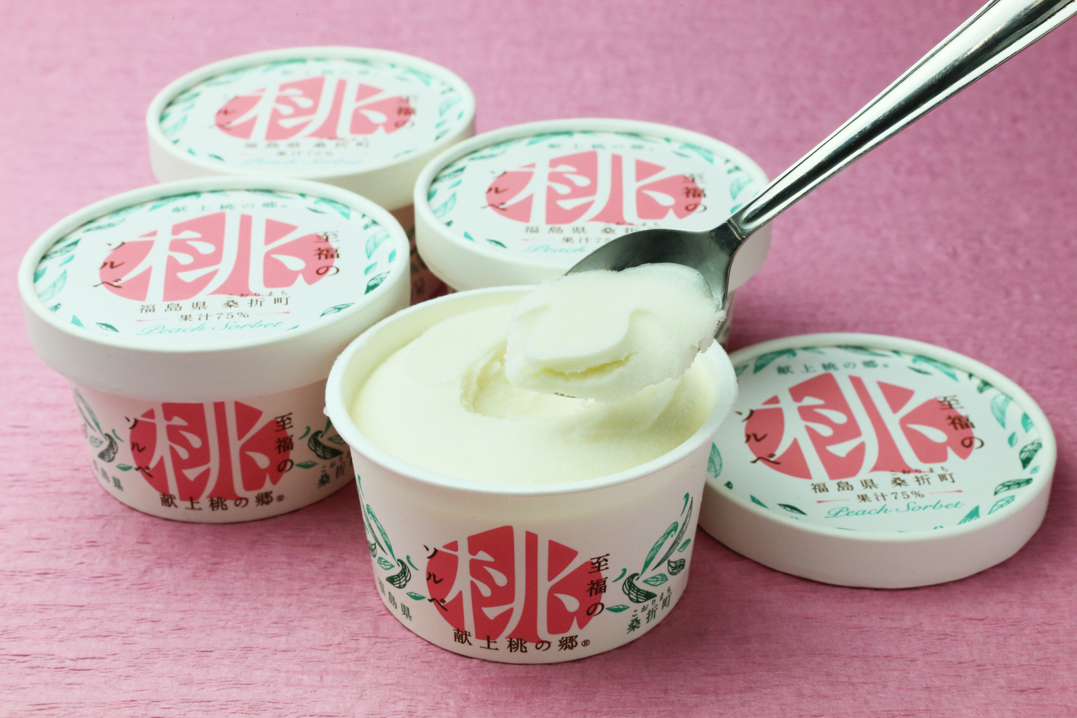 This sorbet is made with nearly 75% fresh peach juice from Fukushima Prefecture, letting you savor the same natural sweetness and famous aroma of northern Japan’s peaches. This ultimate peach sorbet is not only a great summer snack, but it also supports local farmers who were hit by the Great East Japan Earthquake in 2011.