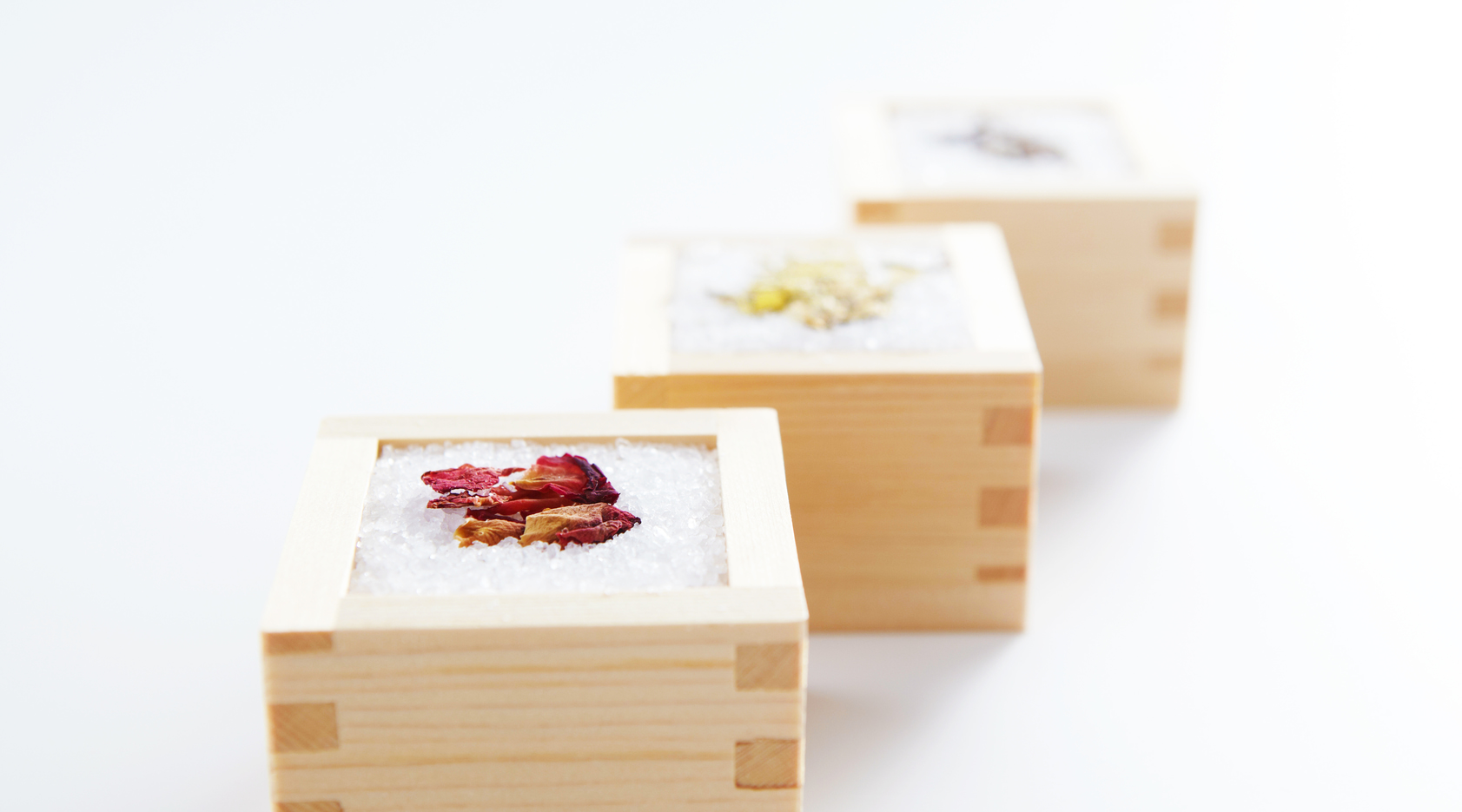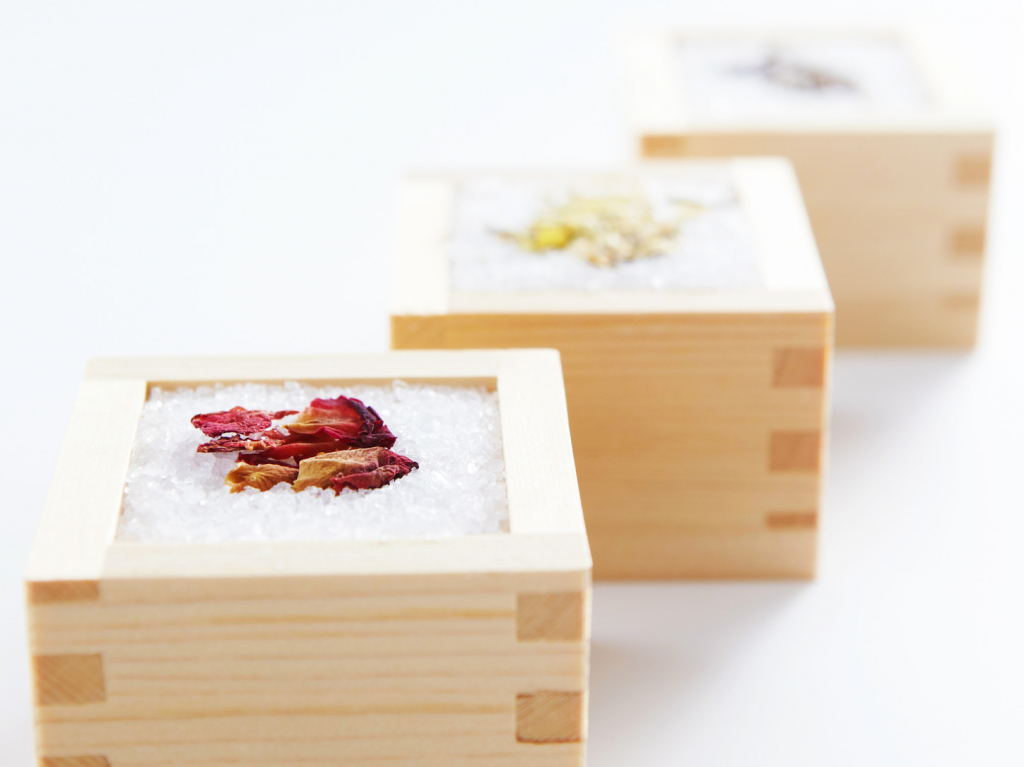 Masu box meets bath salts (hence the name “Math”). Containing sea salt from Camargue in France and a selection of fragrant herbs, this line of bath salts comes in square-shaped wooden cups, traditionally used to serve Japanese sake. After using the salts, place the cup into the bathtub and enjoy the pleasant fragrance of hinoki cypress wood and aroma oil.