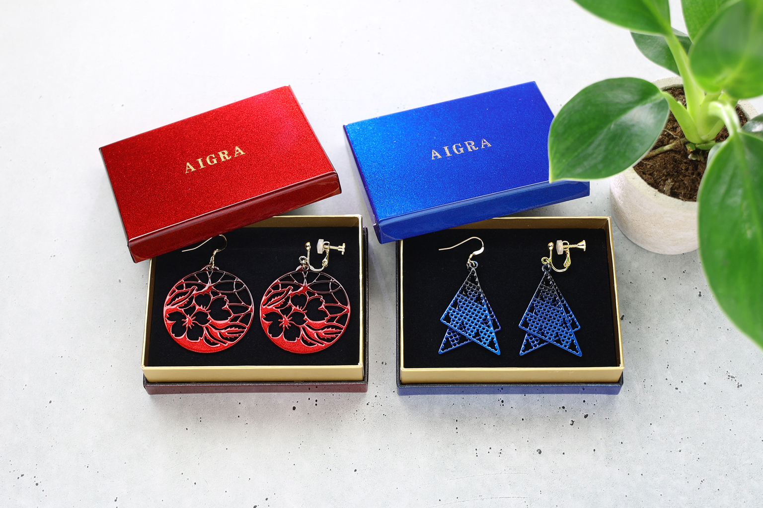 These paper earrings are made using pulp residue and lacquer technology, and combine patterns of Aizu-gata traditional paper stenciling, which is a method of dyeing kimono fabric, and Aizu lacquerware. The company supports the local community through these eco-friendly pieces. Buy here.