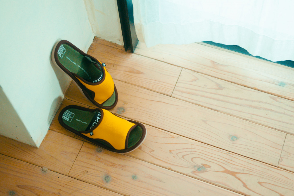 These sustainable loafer slippers are made from upcycled tatami and supple eco leather, tanned with vegetable ingredients and stitched with precision. Traditional Japanese tatami is great at absorbing moisture and odor, insulates, retains heat, and is antibacterial and resilient. Feel luxuriously at ease. Buy here.