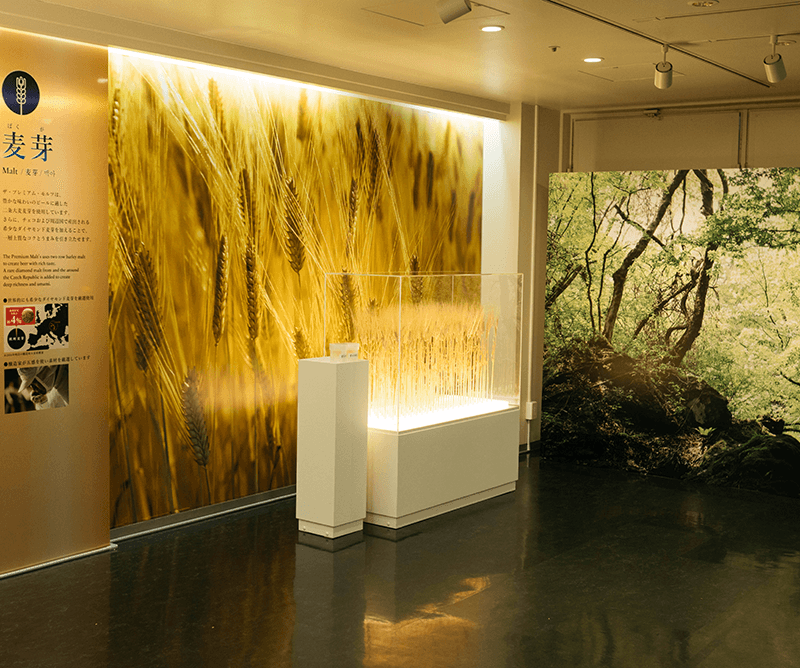 As our tour guide explained, only three ingredients go into The Premium Malt’s: water, barley, and hops. The first, and most plentiful ingredient in beer is water. In fact, beer is 90 percent water – so if anyone tries to tell you that beer isn’t a healthy drink, you can always counter with that! In order to ensure a plentiful supply of 100 percent natural water, each of Suntory’s four breweries is located close to a fresh water source. In the case of the brewery in Musashino, the water source is the Tama River, and water for the beer is drawn daily from an enormous well at the brewery. Every day, Suntory’s brewers taste the water to make sure it will bring out the best of the other two ingredients.