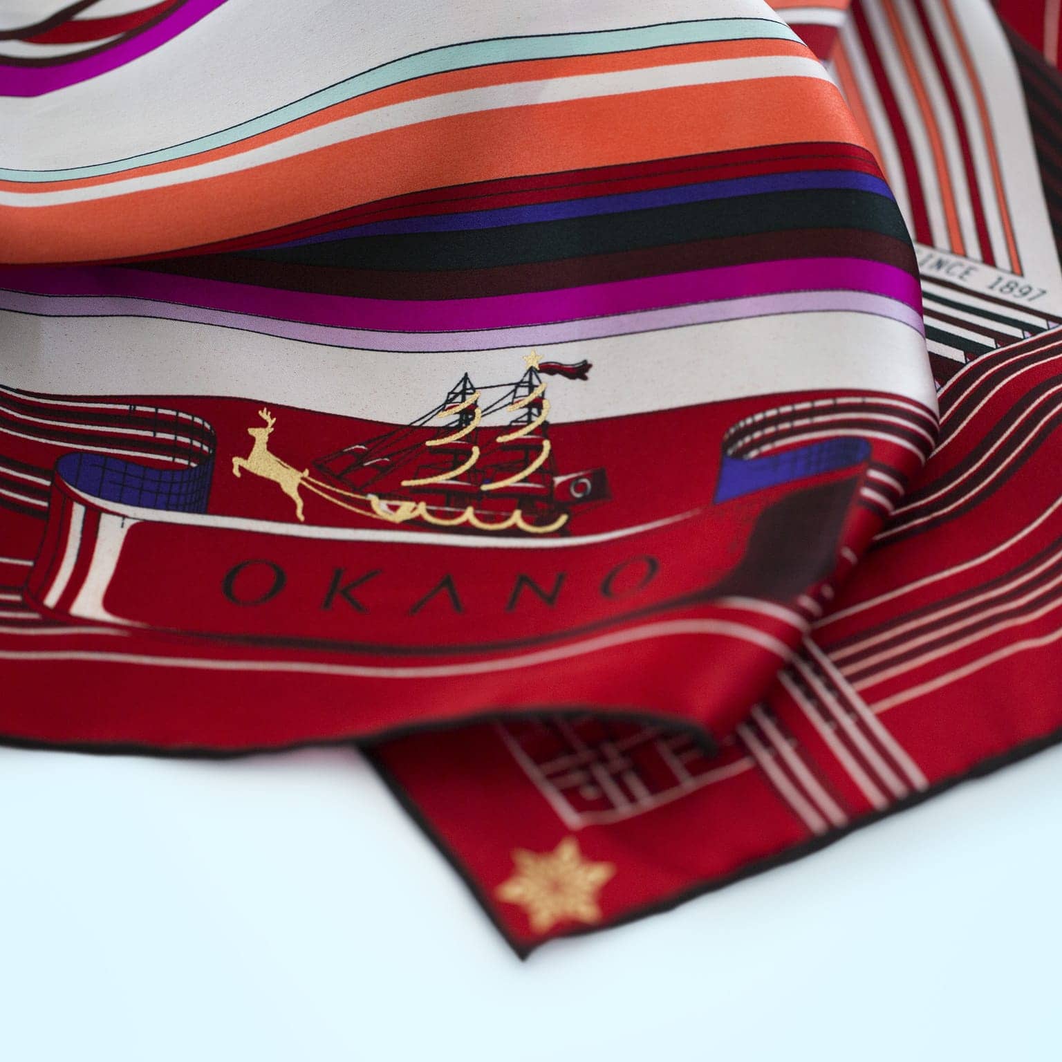 If you’re in the market for a Japan-made, high-quality fashion item, OKANO is the place to visit at GINZA SIX. Founded in 1897, OKANO manufactures Hakata-ori textiles, which are dyed-in silk textiles from the Fukuoka region. While OKANO mostly produces kimono garments in partnership with craftspeople from various regions, the brand is also notable for its gorgeous silk scarves. For Christmas, OKANO has created a scarf (¥57,000) featuring a small reindeer pulling the label’s ship logo like a sleigh. The scarf is adorned with snowflakes, making it a festive and seasonal must-have item.