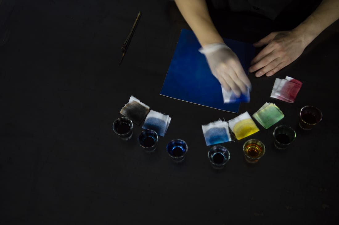 There is a philosophical current running through the yuhaku oeuvre. Dyeing leather, with an emphasis on sustainability and an ultimate goal of producing zero-waste leather, is meticulous to say the least. yuhaku’s production involves multiple color tests to produce the desired tones, and the matching of certain tones to the appropriate materials – all done in-house. So the colors of these products are not mechanically made eye candy. Their subtlety is part of a human, handcrafted character.