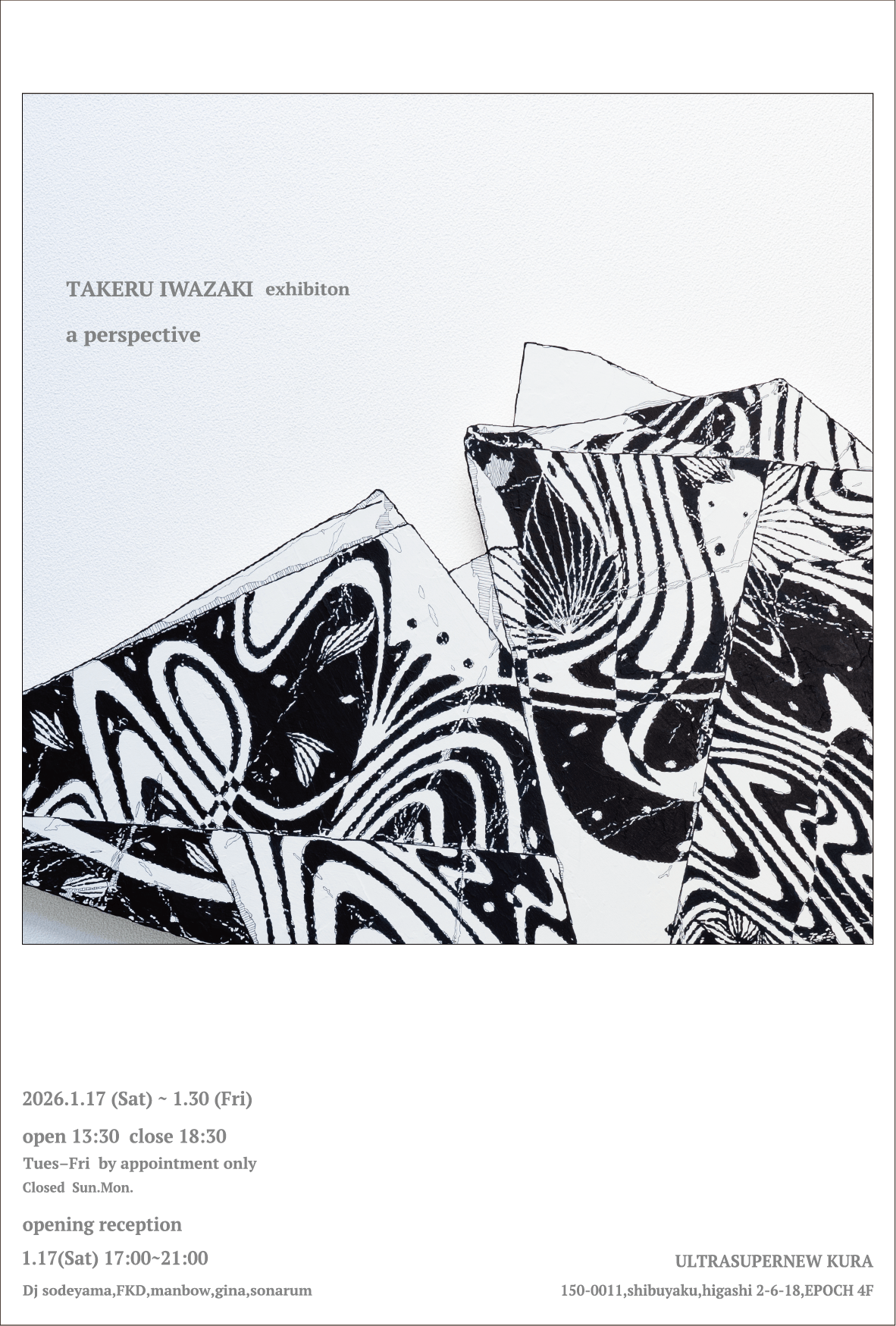 | Date & Time | Jan 17-30・13:30-18:30・Open Tuesday to Friday, by appointment only |