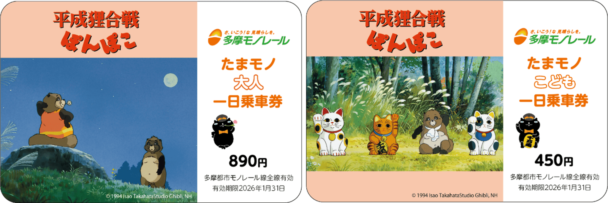 To get the most out of the collaboration and enjoy all that Tama city has to offer, Tama Monorail is offering an exclusive one-day train pass featuring characters from Pom Poko. Costing ¥890 for adults and ¥450 for children, fans can get unlimited rides across the monorail route.