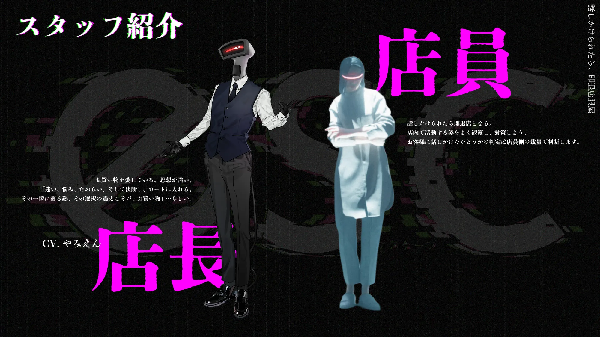 The store manager is depicted as a cool chimera of a humanoid barcode scanner. The character is voiced by Yamien, a voice actor known for his distinctive low, resonant voice and laid-back manner of speaking.