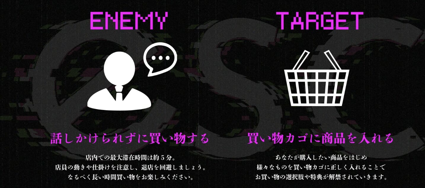The goal of the game is to go shopping while avoiding all of the store’s staff members. If a staff member call out to you, you’re disqualified. If you ask a staff member a question? Also immediately disqualified.