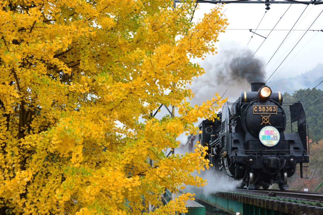 Saitama’s Chichibu Railway boasts the closest running steam locomotive to the Tokyo metropolitan area. It’s a full sensory experience with the sharp smell of smoke, the chugging sound of the engine, and the jet black of the locomotive standing in stark contrast to the golden yellow leaves of ginkgo trees. Although the train normally only runs on weekends, the schedule extends to weekdays during summer and the autumn foliage season. Riding the train offers gorgeous views of the Arakawa River, the Chichibu mountain range in full foliage glory, and harvested rice paddies. Note that the train only makes one return journey on the days it runs!